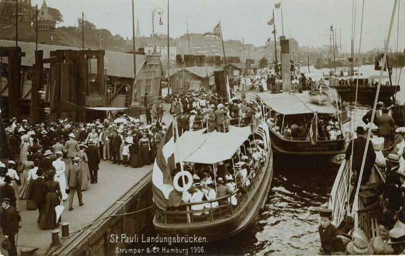Keywords: St-Pauli-Landungsbrücken-1906.jpg Postkarte St Pauli-Landungsbrücken Hamburg 1906 http //stadtteilgeschichten net/handle/2339/1186 stadtteilgeschichten net/ 1906 unknown Publisher Strumper Co Hamburg Landungsbrücken 1906 in Hamburg Port of Hamburg in the 1900s Harbour cruises in Hamburg Boats in Hamburg PD-old |