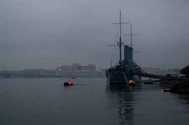 Keywords: st petersburg russia neva fog twilight cruiser aurora
