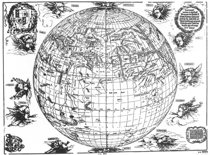 Keywords: Stabius-Durer world map.jpg en Johann Stabius's 1515 world map whose engraving is credited to Albrecht Dürer A planisphere globe surrounded by the twelve winds equivalent to Ptolemy's third projection The arms of Matthäus Cardinal Lang von Wellenburg archbishop of Salzburg at upper left; the arms of Johann Stabius imperial astrologer at lower left Dedication to Cardinal Lang at upper right; imperial privilege and date at lower right As no 16th-century copies are known to survive and the image lacks the subtitle of Adam von Bartsch 1757-1821 's 1781 reprint it is presumably from Carl Ritter 1779-1859 's 1847 edition la Reverendiss domino et illustriss Principi Dño Matheo T Angeli Diacono Cardinali Gurceñ Sa Caẽs Mtis per Italia locũtenenti generali vdño suo colen Joañ Stabius Au hãc orb imaginem dedicat Imp Caes niuus Maximilianus P F Aug Privilegio caiut nequis Libros membraenas cartas pictu'as volumĩa vel quecuqe alia que Ioan Stabius Au sub suo titulo nomie emiserit sine sua expressa voluntate In decem annis a die editioĩs sequentibus imprimat sub pena amissionis rerum impressarum decem mâcharum auri puri 1 5 1 5 1847 https //thonyc wordpress com/2015/09/23/reaching-for-the-stars/ The Renaissance Mathematicus credited to http //www astronomie-nuernberg de/personen/Duerer_Weltkarte asp Astronomie in Nürnberg Johann Stabius after Ptolemy al other versions <gallery> File Stabius map of the world jpg Stabius map of the world II jpg </gallery> PD-old-70-1923 PD-100 1840s maps of the world 1847 maps Maps in Latin Carl Ritter Stabius world map 1847 |