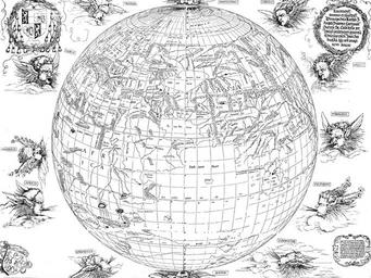| Keywords: Stabius map of the world II.jpg en Johann Stabius's 1515 world map whose engraving is credited to Albrecht Dürer A planisphere globe surrounded by the twelve winds equivalent to Ptolemy's third projection The arms of Matthäus Cardinal Lang von Wellenburg archbishop of Salzburg at upper left; the arms of Johann Stabius imperial astrologer at lower left Dedication to Cardinal Lang at upper right; imperial privilege and date at lower right As no 16th-century copies are known to survive and the image lacks the subtitle of Adam von Bartsch 1757-1821 's 1781 reprint it is presumably from Carl Ritter 1779-1859 's 1847 edition la Reverendiss domino et illustriss Principi Dño Matheo T Angeli Diacono Cardinali Gurceñ Sa Caẽs Mtis per Italia locũtenenti generali vdño suo colen Joañ Stabius Au hãc orb imaginem dedicat Imp Caes niuus Maximilianus P F Aug Privilegio caiut nequis Libros membraenas cartas pictu'as volumĩa vel quecuqe alia que Ioan Stabius Au sub suo titulo nomie emiserit sine sua expressa voluntate In decem annis a die editioĩs sequentibus imprimat sub pena amissionis rerum impressarum decem mâcharum auri puri 1 5 1 5 1847 http //www buzemann de/luther/ Das Weltbild Martin Luthers Johann Stabius after Ptolemy c other versions <gallery> File Stabius map of the world jpg File Stabius-Durer world map jpg </gallery> PD-old-70-1923 Maps in Latin Stabius world map 1847 Carl Ritter 1847 maps 1840s maps of the world |