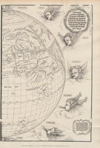 Keywords: Stabius world map R.png en The right half of Johann Stabius's 1515 world map whose engraving is credited to Albrecht Dürer A planisphere globe surrounded by the twelve winds equivalent to Ptolemy's third projection The arms of Matthäus Cardinal Lang von Wellenburg archbishop of Salzburg at upper left; the arms of Johann Stabius imperial astrologer at lower left Dedication to Cardinal Lang at upper right; imperial privilege and date at lower right la Reverendiss domino et illustriss Principi Dño Matheo T Angeli Diacono Cardinali Gurceñ Sa Caẽs Mtis per Italia locũtenenti generali vdño suo colen Joañ Stabius Au hãc orb imaginem dedicat Imp Caes niuus Maximilianus P F Aug Privilegio caiut nequis Libros membraenas cartas pictu'as volumĩa vel quecuqe alia que Ioan Stabius Au sub suo titulo nomie emiserit sine sua expressa voluntate In decem annis a die editioĩs sequentibus imprimat sub pena amissionis rerum impressarum decem mâcharum auri puri 1 5 1 5 1888 http //digi ub uni-heidelberg de/diglit/jbksak1888a/0232 Heidelberger Historische Bestände credited to the July 1888 Jahrbuch der Kunsthistorischen Sammlungen des Allerhöchsten Kaiserhauses Johann Stabius after Ptolemy c other versions <gallery> File Stabius world map L png the left half </gallery> PD-old-70-1923 LlywelynII Maps in Latin Stabius world map 1888 1880s maps of the world 1888 maps |