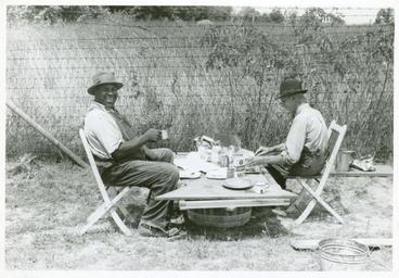 | Keywords: new york public library newyorkpubliclibrary dc:identifier=http://digitalgallery.nypl.org/nypldigital/id?1260128 dc:identifier=httpdigitalgallerynyplorgnypldigitalid1260128 xmlns:dc=http://purl.org/dc/elements/1.1/ xmlns:dc=httppurlorgdcelements11 dc:coverage=1940 stablehands horse trainers horsetrainers picnicking african american men africanamericanmen kentucky shelbyville ky. ky Digital ID: 1260128. Stable hand and trainer eating picnic lunch before the Shelby County Horse Show and Fair, Shelbyville, Kentucky. Aug. 1940.. Wolcott, Marion Post -- Photographer. August 1940 Notes: Original negative #: 30939-M1 Source: Farm Security Administration Collection. / Kentucky. / Marion Post Wolcott. (more info) Repository: The New York Public Library. Schomburg Center for Research in Black Culture. Photographs and Prints Division. See more information about this image and others at NYPL Digital Gallery. Persistent URL: digitalgallery.nypl.org/nypldigital/id?1260128 Rights Info: No known copyright restrictions; may be subject to third party rights (for more information, click here) Digital ID: 1260128. Stable hand and trainer eating picnic lunch before the Shelby County Horse Show and Fair, Shelbyville, Kentucky. Aug. 1940.. Wolcott, Marion Post -- Photographer. August 1940 Notes: Original negative #: 30939-M1 Source: Farm Security Administration Collection. / Kentucky. / Marion Post Wolcott. (more info) Repository: The New York Public Library. Schomburg Center for Research in Black Culture. Photographs and Prints Division. See more information about this image and others at NYPL Digital Gallery. Persistent URL: digitalgallery.nypl.org/nypldigital/id?1260128 Rights Info: No known copyright restrictions; may be subject to third party rights (for more information, click here) Digital ID: 1260128. Stable hand and trainer eating picnic lunch before the Shelby County Horse Show and Fair, Shelbyville, Kentucky. Aug. 1940.. Wolcott, Marion Post -- Photographer. August 1940