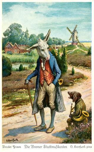 | Keywords: Stadtmusikanten 1 Herrfurth 500x804.jpg Die Bremer Stadtmusikanten Postkartenserie nach dem Märchen der Brüder Grimm <br />Serie von sechs Postkarten der Firma Uvachrom Gesellschaft für Farbenphotographie m b H München - Stuttgart Serie 285 Nr 4695 http //www goethezeitportal de/index php id 4169 1934 Creator Oskar Herrfurth <gallery> File Stadtmusikanten 1 Herrfurth 500x804 jpg Serie 285 Nr 4695 Herrfurth Bremer Stadtmusikanten jpg Serie 285 Nr 4696 File Stadtmusikanten 3 Herrfurth 500x798 jpg Serie 285 Nr 4697 File Stadtmusikanten 4 Herrfurth 500x795 jpg Serie 285 Nr 4698 File Stadtmusikanten 5 Herrfurth 500x782 jpg Serie 285 Nr 4699 File Stadtmusikanten 6 Herrfurth 500x798 jpg Serie 285 Nr 4700 </gallery> PD-old-70 Oskar Herrfurth Town musicians of Bremen Fairy tales on postcards Postcards published by Uvachrom |