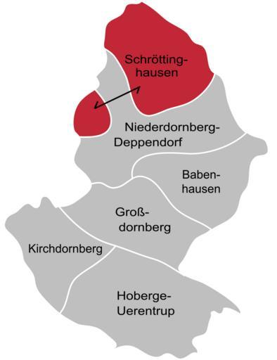 | Keywords: Stadtteile Dornberg - Schröttinghausen.svg  Gliederung von Dornberg in Stadtteile Stadtbezirk von Bielefeld Lage von Schröttinghausen http //www bielefeld de/ftp/bilder/bildung/stadtarchiv/Disk Gebietreform_435 jpg 2009-10-29 TUBS coloration by Hagar66 Maps of Bielefeld Dornberg Bielefeld |