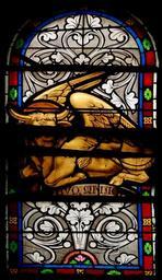 | Keywords: Stained glass St Luke Orcival.jpg Winged bull symbol of St Luke From the choir of the basilica of Orcival Auvergne France Taureau ailé symbole de saint Luc Chœur de la basilique d'Orcival Auvergne France own own picture Jastrow 2006 Public Domain Stained glass windows in Puy-de-Dôme Interior of basilica of Notre-Dame d'Orcival Bull of Saint Luke on stained glass windows |