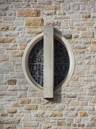 | Keywords: stained glass window stained glass window stained glass church religious color pattern colorful architecture contemporary design designer modern building city culture orange decoration angular frontage blue stone rock facade exterior block lines visual contrast grid frame |