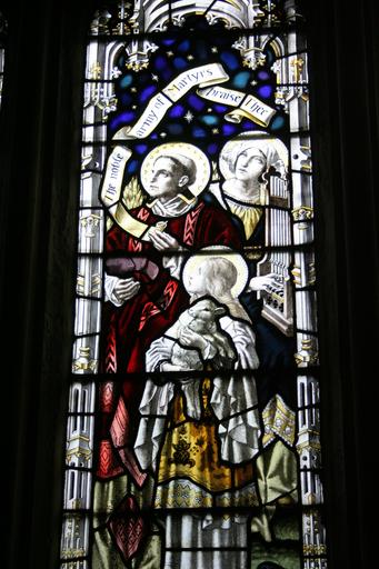 Keywords: stained glass window st michael's church sittingbourne memorial window martyrs st cecilia portative organ religion saint lamb of god church christianity worship history heritage