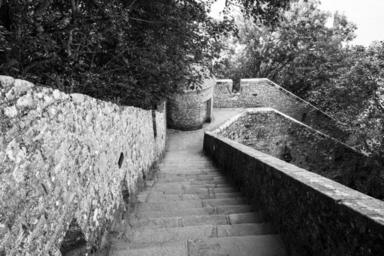 Keywords: stairs desending down up travel path journey pathway route foot trip climbing footpath trail destination outdoors walk hike direction perspective black and white adventure way navigation