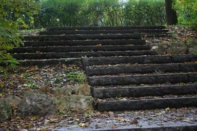 Keywords: stairs leaves autumn gradually