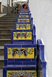 Keywords: stairs mosaic gran canaria spain canary islands town water firgas benches architecture artistic artwork bench seats colorful