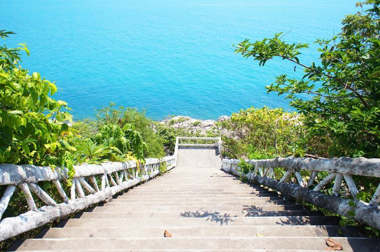 Keywords: stairs sea blue nature water stone view steps