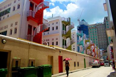 Keywords: stairs singapore road city architecture modern urban clouds sky home building crane sky building site construction work blue baukran build construction colorful parasol woman asia