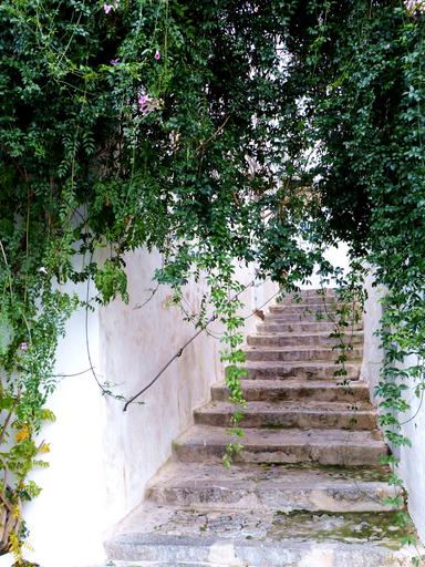Keywords: stairs spain plant old town gradually alley away city green leaves romantic stones ibiza romance idyllic mood