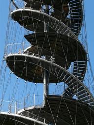 Keywords: stairs spiral staircase metal gradually ropes steel cables modern view observation tower tower stuttgart killesberg park green area recreation complex building architecture scaffold upgrade high