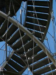 Keywords: stairs stair step metal gradually ropes steel cables modern view observation tower tower stuttgart killesberg park green area recreation complex building architecture scaffold upgrade high spiral staircase