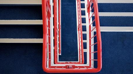 Keywords: stairs stairwell stairway staircase construction modern design architecture interior step building white metal steel railing floor handrail stylish indoor space entrance high upstairs office exit ascending walk way style