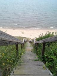 Keywords: stairs steps long beach ocean shore lake railing stairway staircase climb down access sand coast water sea vacation holiday climbing passage