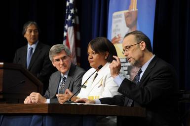 | Keywords: Stakeholder's Event to Announce Graphic Warning Labels.jpg en From Left HHS Assistant Secretary for Health Howard Koh Deputy Secretary Bill Corr Surgeon General Regina Benjamin and FDA Director of the Center for Tobacco Products Dr Lawrence Deyton announced the nine graphic health warnings that will be required to appear on every pack of cigarettes sold in the United States and in every cigarette advertisement beginning in September 2012 at a Stakeholders event at the White House This measure is aimed at making sure that every American understands the dangers of smoking HHS Photo By Chris Smith 2011-06-21 11 54 30 http //www flickr com/photos/hhsgov/5857321251/sizes/o/in/photostream/ HHSgov HHSgov http //flickr com/photos/47445478 N05/5857321251 2013-03-23 13 51 15 United States Government Work PD-USGov Uploaded with UploadWizard Howard Koh Bill Corr Regina Benjamin |