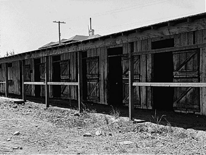 | Keywords: Stalls at Tanforan.jpg Tanforan Assembly Center ” San Bruno California Original caption Near view of horse-stall left from the days when what is now Tanforan Assembly center was the famous Tanforan Race Track Most of these stalls have been converted into family living quarters for Japanese Library of Congress 1942 Creator Dorothea Lange Work of United States government http //www worldpress org/2588 cfm PD-USGov Tanforan Assembly Center | ||||