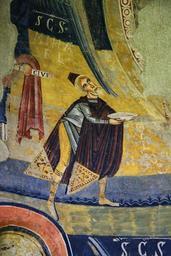 | Keywords: StaMaria Aneu MNAC-015874 0003.jpg La decoració de l ™absis de Santa Maria d ™Ã neu és una mostra de la superposició de temes i motius de l ™Antic i del Nou Testament a la pintura romà nica catalana A la volta hi ha representada l ™Epifania amb Maria en Majestat i els Mags Al registre inferior apareixen els dos serafins de la visió d ™Isaïes al temple de Jerusalem Is 6 3-6 que canten «S AN C TU S S AN C TU S S AN C TU S» i apropen les tenalles amb brases ardents als llavis dels profetes Elies i Isaïes Al mig les quatre rodes de foc del carro de Jahvè al·ludeixen a la visió d ™Ezequiel Ez 1 15 Cal subratllar també el protagonisme dels tres arcà ngels Miquel Gabriel i Rafael advocats el dia del Judici Final Aquesta original temà tica troba la seves fonts en repertoris bizantinitzants d ™Ità lia Final s XII - inici s XI Fresc 700 x 410 x 210 cm exhibition history credit line accession number 015874 own ca user amadalvarez Date 2012-07-30 10 43 58 PD-Art Apse of Santa Maria d'à neu |