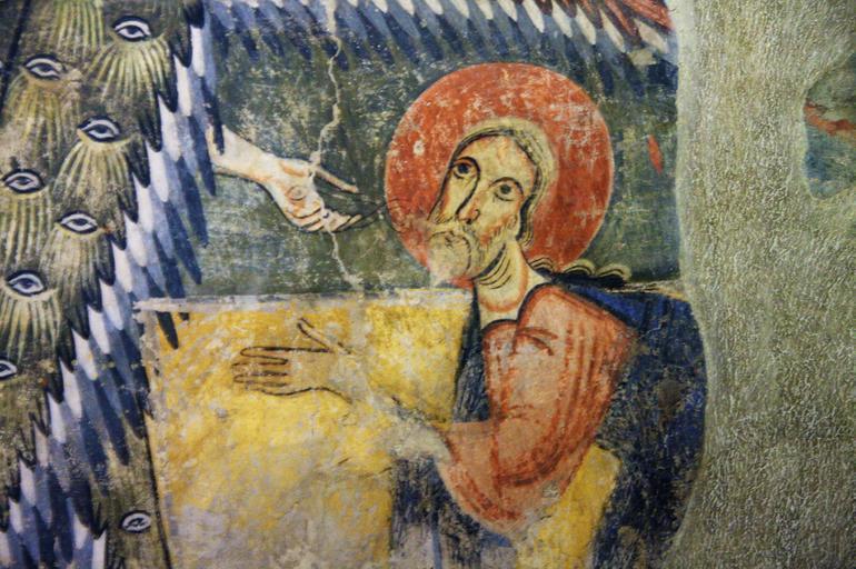 Keywords: StaMaria Aneu MNAC-015874 0007.jpg La decoració de l ™absis de Santa Maria d ™Ã neu és una mostra de la superposició de temes i motius de l ™Antic i del Nou Testament a la pintura romà nica catalana A la volta hi ha representada l ™Epifania amb Maria en Majestat i els Mags Al registre inferior apareixen els dos serafins de la visió d ™Isaïes al temple de Jerusalem Is 6 3-6 que canten «S AN C TU S S AN C TU S S AN C TU S» i apropen les tenalles amb brases ardents als llavis dels profetes Elies i Isaïes Al mig les quatre rodes de foc del carro de Jahvè al·ludeixen a la visió d ™Ezequiel Ez 1 15 Cal subratllar també el protagonisme dels tres arcà ngels Miquel Gabriel i Rafael advocats el dia del Judici Final Aquesta original temà tica troba la seves fonts en repertoris bizantinitzants d ™Ità lia Final s XII - inici s XI Fresc 700 x 410 x 210 cm exhibition history credit line accession number 015874 own ca user amadalvarez Date 2012-07-30 10 44 28 PD-Art Apse of Santa Maria d'à neu |