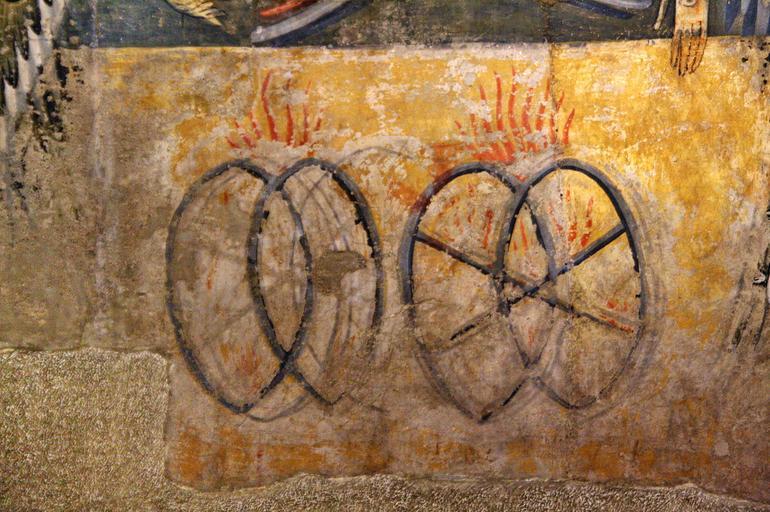 Keywords: StaMaria Aneu MNAC-015874 0008.jpg La decoració de l ™absis de Santa Maria d ™Ã neu és una mostra de la superposició de temes i motius de l ™Antic i del Nou Testament a la pintura romà nica catalana A la volta hi ha representada l ™Epifania amb Maria en Majestat i els Mags Al registre inferior apareixen els dos serafins de la visió d ™Isaïes al temple de Jerusalem Is 6 3-6 que canten «S AN C TU S S AN C TU S S AN C TU S» i apropen les tenalles amb brases ardents als llavis dels profetes Elies i Isaïes Al mig les quatre rodes de foc del carro de Jahvè al·ludeixen a la visió d ™Ezequiel Ez 1 15 Cal subratllar també el protagonisme dels tres arcà ngels Miquel Gabriel i Rafael advocats el dia del Judici Final Aquesta original temà tica troba la seves fonts en repertoris bizantinitzants d ™Ità lia Final s XII - inici s XI Fresc 700 x 410 x 210 cm exhibition history credit line accession number 015874 own ca user amadalvarez Date 2012-07-30 10 44 50 PD-Art Apse of Santa Maria d'à neu |