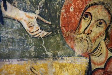 | Keywords: StaMaria Aneu MNAC-015874 0009.jpg La decoració de l ™absis de Santa Maria d ™Ã neu és una mostra de la superposició de temes i motius de l ™Antic i del Nou Testament a la pintura romà nica catalana A la volta hi ha representada l ™Epifania amb Maria en Majestat i els Mags Al registre inferior apareixen els dos serafins de la visió d ™Isaïes al temple de Jerusalem Is 6 3-6 que canten «S AN C TU S S AN C TU S S AN C TU S» i apropen les tenalles amb brases ardents als llavis dels profetes Elies i Isaïes Al mig les quatre rodes de foc del carro de Jahvè al·ludeixen a la visió d ™Ezequiel Ez 1 15 Cal subratllar també el protagonisme dels tres arcà ngels Miquel Gabriel i Rafael advocats el dia del Judici Final Aquesta original temà tica troba la seves fonts en repertoris bizantinitzants d ™Ità lia Final s XII - inici s XI Fresc 700 x 410 x 210 cm exhibition history credit line accession number 015874 own ca user amadalvarez Date 2012-07-30 10 50 58 PD-Art Apse of Santa Maria d'à neu |