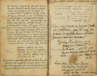 | Keywords: Stammbuch J V Deyger.jpg Doppelseite mit Eintragungen vom August 1553 aus dem Stammbuch des Johann Valentin Deyger 1552 “1554 Universitätsbibliothek Tübingen Mh 1030 Kostbarkeiten aus alter und neuer Zeit ISBN 3-88705-032-0 - 1552 1554 diverse Autoren Reproduction of a mansucript that is in the public domain because of its age PD-old 16th-century manuscripts Stammbuch Universitätsbibliothek Tübingen | ||||