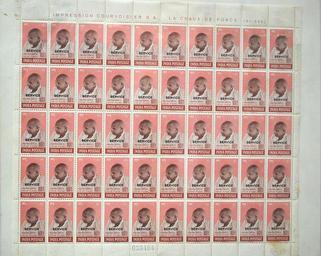 | Keywords: Stamp India 1948 Gandhi 10Rs Service overprint.jpg The normal un-overprinted stamp was issued in 1948 after the assassination of Mahatma Gandhi One sheet of 100 stamps were overprinted with the Service overprint of which this is a pane of 50 stamps <br>See India 10 Rupees Mahatma Gandhi postage stamp for details This picture was taken by myself Kaleshkumar at the International Philatelic Exhibition Indipex 2011 held at New Delhi where it was exhibited Stamp issued in 1948 photo by en wiki user Kaleshkumar Stamps issued by the Indian Department of Posts and this sheet is owned by them Stamp licence PD-India Image licence cc-zero Original upload log page en wikipedia GandhiService10Rs jpg Upload date User Bytes Dimensions Comment 2011-02-20 15 09 55 Kaleshkumar 6720887 3251×2592 <small><nowiki>This picture was taken from the International Philatelic Exhibition Indipex 2011 held at New Delhi The sheet in this image belongs to Department of Posts India </nowiki></small> Gandhi on 1948 stamps of India Overprints on stamps of India Philatelic uploads by Ww2censor India Official stamps |