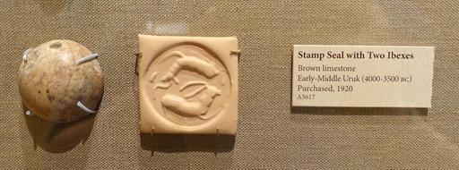 | View Original: | Stamp seal with Two Ibexes, Early-Middle Uruk, 4000-3500 BC, brown limestone - Oriental Institute Museum, University of Chicago - DSC07199.JPG (4001x1481) | |||