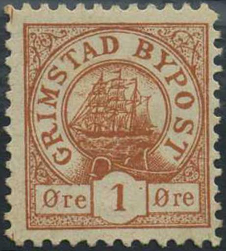 Keywords: StampGrimstadLockalPost.jpg ru Почтовая ма ка местной почты в Г имстаде о вегия 1887 Personal collection Processed by A Sdobnikov 1887 PD-old Stamps of Grimstad