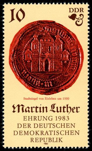 | Keywords: Stamps of Germany (DDR) 1982, MiNr 2754.jpg Briefmarke der DDR 500 Geburtstag von Martin Luther I Stadtsiegel von Eisleben um 1500 own scan 1982 scan 2010 Seal of Eisleben Unknown created c 1500 Stamp design Schmidt copyright information PD-old-100 PD-text Nightflyer <span class signature-talk >talk</span> 21 56 10 September 2010 UTC 1982 stamps of the German Democratic Republic History of Eisleben Martin Luther on stamps Historical seals Seals from Saxony-Anhalt Anniversaries on stamps of Germany birth German stamps review keep |