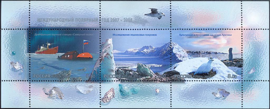 | Keywords: StampsPolarYear2007.jpg en Stamps of Russia International Polar Year beginning of series 2007 ru Почтовый блок России еждуна одный поля ный год начало се ии 2007 1168 6 00 Д ейфующие научные станции Севе ный полюс 1169 7 00 Исследования ледниковых пок овов 1170 8 00 Культу ное и п и одное наследие А ктики Фо ма выпуска В листах из 3 ма ок c офо мленными полями в фо ме сцепки Тип ма ки Станда тная Способ печати Офсет на мелованной бумаге с се еб яной пастой Cт ана выпуска border 20px Россия Дата выпуска 21 ма та 2007 год Издатель ИТЦ а ка Художник А Федулов Разме ма ок 50X37; листа - 190X78 КПД 1515 ШПДГ 34 оминал 6 00 7 00 8 00 ублей Зубцовка г ебенчатая - 12 Ти аж 200 тыс ; листа - нет данных П исвоенный номе 1168-1170 <ref>http //rusmarka ru/catalog/marka/position/13328 aspx</ref> В Каталоге Госуда ственные знаки почтовой оплаты Почтовые ма ки Российской Феде ации 1992-2009 изоб ажены под номе ами 1168-1170<ref> ответственный В В Шелихов и д часть заглавие Госуда ственные знаки почтовой оплаты Почтовые ма ки Российской Феде ации 1992-2009 ссылка место издательство а ка год 2009 ст аницы 122-123 257 ст аниц 177-178 293 978-5-9901597-3-0 </ref> Own 2007-08-07 User Leonid Dzhepko PD-RU-exempt stamps Sheets of stamps of Russia 2007 1168-1170 Birds on stamps of Russia Ships on stamps of Russia Flags of Russia on stamps Miniature sheet International Polar Year 2007-2008 Exploration of the Arctic on stamps North Pole Soviet and Russian manned drifting ice stations |