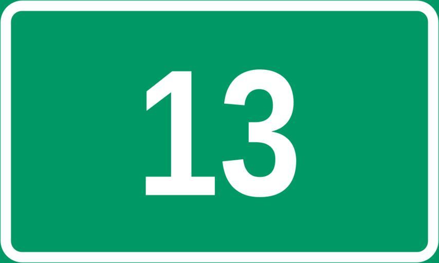 Keywords: Stamvei 13.svg en Diagram of norwegian trunk road sign Own work by uploader based on File Tabliczka E svg BjørnN 2009-02-19 Diagrams of route signs of Norway 013 13 number