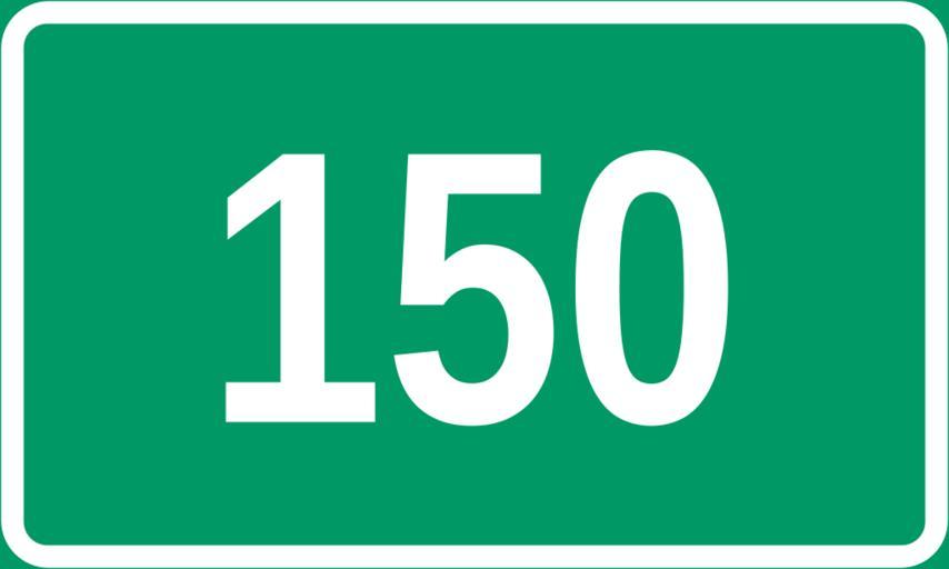 Keywords: Stamvei 150.svg en Diagram of norwegian trunk road sign Own work by uploader based on File Tabliczka E svg BjørnN 2009-02-19 Diagrams of route signs of Norway 150 150 number