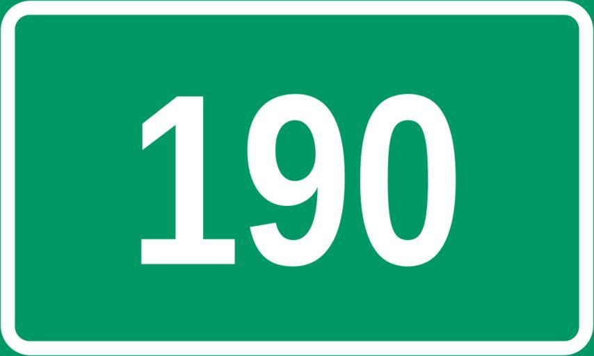 Keywords: Stamvei 190.svg en Diagram of norwegian trunk road sign Own work by uploader based on File Tabliczka E svg BjørnN 2009-02-19 Diagrams of route signs of Norway 190 190 number