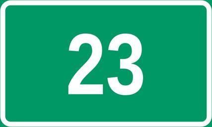 Keywords: Stamvei 23.svg en Diagram of norwegian trunk road sign Own work by uploader based on File Tabliczka E svg BjørnN 2009-02-19 Diagrams of route signs of Norway 023 23 number