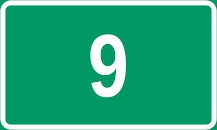Keywords: Stamvei 9.svg en Diagram of norwegian trunk road sign Own work by uploader based on File Tabliczka E svg BjørnN 2009-02-19 Diagrams of route signs of Norway 009 9 number