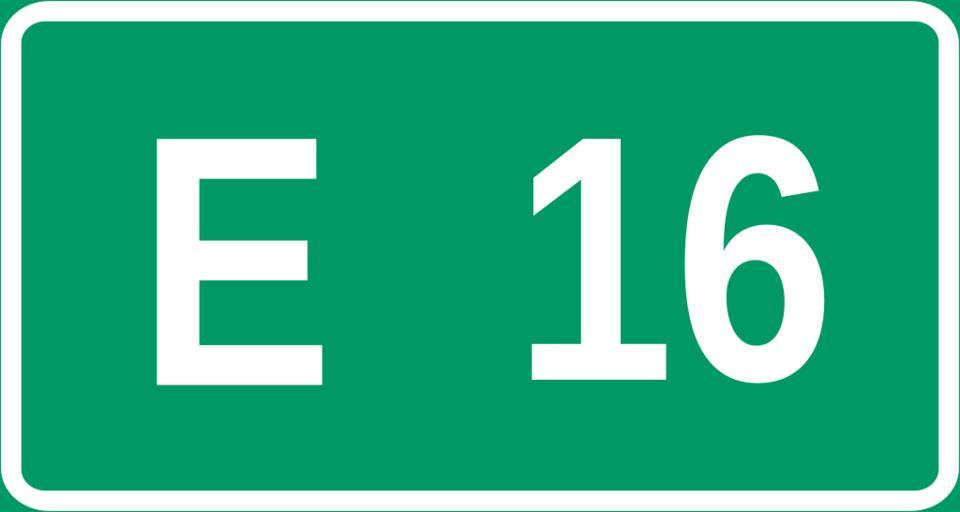 Keywords: Stamvei E16.svg en Diagram of norwegian trunk road sign Own work by uploader based on File Tabliczka E svg BjørnN 2009-03-13 Diagrams of European road signs of Norway 016 SVG road signs in Norway 016 E16 Norway 16 number