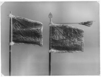 | Keywords: Standar Jönköpings vapen - Livrustkammaren - 77084-negative.tif LSH artwork Olof Hoffman Konstnär sv Torde ha förts vid någon av de vid Livregementets femdubbling tillkomna skvadronerna förfärdigat enligt Karl XII s förordning 2 augusti 1700 Möjligen målad av Olof Hoffman Lenk Duk enkel av blå sidendamast Mönsterrapport på damasten b 160 mm h 420 mm Dukens höjd vådbredden Dekor Målad lika på båda sidor i övre inre hörnet en borg i silver med tre torn och en port stående på grön mark Jönköpings vapen Frans dubbel av blått silke Duken fäst med tre rader tennlickor på blå mönstervävda band 13 mm breda Banderoller blå silkessnodd 2 st tofsar i blekt blått silke Stång av gråmålat trä kannelerad med löpande bärring; holk av förgylld mässing; spetsen genombruten med dubbelt C krönt med sluten krona avbruten och sned ; lagningar med järnringar nedtill original caption standar Jönköpings vapen - LRK 16905 1700 iron - brass - wood Färg grå material trä size mm 90 holk size mm 1800 snodd size mm 190 tofs size mm 420 mönsterrapport size mm 13 band size mm 160 mönsterrapport size mm 210 vapen size mm 60 frans size mm 470 size mm 540 size mm 3150 stång total LRK place of origin original filename LN_A00399_000399 53471 inventory number LRK 16905 77084 CC0 Standar Jönköpings vapen - Livrustkammaren - 77084 tif <gallery caption Different images of same object > File Standar med Jönköpings sköldemärke - Livrustkammaren - 43212 tif </gallery> |