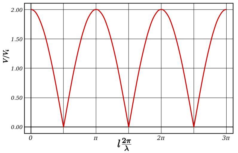 | Keywords: Standing wave nulls.svg en A diagram of a maximum voltage over time V'<sub>mot</sub> along a uniform lossless transmission line This is determined by <math>V_mathrm mot A sqrt 4rhocos 2 kx+ 1-rho 2 </math> where ρ is the magnitude of the reflection coefficient A is the ampliutude in volts k is the wavenumber x is the distance along the wire at which we measure Here ρ is set to a range of values and A and k are set to 1 Note that this varies between a constant equal to A at 'ρ 0 and a rectified sinusoid of amplitude 4A Standing_Wave_Ratio svg 2010-07-11 13 44 UTC Standing_Wave_Ratio svg Inductiveload derivative work <font style background FFF090;color 00C000 >Sp<font style background FFF0A0;color 80C000 >in<font style color C08000 >ni</font></font><font style color C00000 >ng</font></font><font style color 2820F0 >Spark</font> Simplified version to highlight nulls Spinningspark Standing_Wave_Ratio svg Transmission lines Reflections Antenna diagrams |