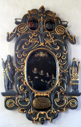 Keywords: Stange kirke epitafium.jpg Epitaph in Stange church Norway Own 2007-08-06 Jensens DEFAULTSORT Stockfleth våpen Stange kirke Wall mounted church monuments in Norway Coats of arms of families of Norway Epitaphs in Norway