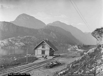 | Keywords: Stanghelle stasjon.jpeg en Stanghelle railway station on Vossebanen now Bergensbanen in Vaksdal Norway http //www nb no/cgi-bin/galnor/gn_sok sh id 46724 skjema 2 fm 4 creator Axel Lindahl 1883 - 1890 PD-old-100 Axel Lindahl Stanghelle stasjon Mountains of Hordaland Gamle Vossebanen 60 33N 5 44E Stanghelle Station, 1892, is a railway station located at the village of Stanghelle in Vaksdal municipality in Hordaland county, Norway. Opened 1883. | ||||