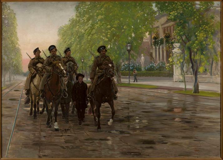 | Keywords: Stanisław Masłowski, Świt 1906 (Wiosna 1905).jpg  Artwork Creator Stanisław Masłowski 1906 http //cyfrowe mnw art pl/dmuseion/docmetadata id 5024 oil canvas Size cm 121 170 5 Institution National Museum in Warsaw ZBIORY SZTUKI POLSKIEJ DO 1914 r Not on view accession number MP 2152 place of discovery object history ProvenanceEvent purchase National Museum in Warsaw Bohdan Wydżga exhibition history ST MASŁOWSKI / WARSZAWA / 1906 signature/location/date bottom right credit line See below http //cyfrowe mnw art pl/dmuseion/docmetadata id 5024 MNW Cyfrowe <gallery> File Stanisław Masłowski Świt 1906 Wiosna 1905 jpg File Stanisław Masłowski Świt 1906 Wiosna 1905 jpg </gallery> PD-old-auto National Museum in Warsaw partnership Stanisław Masłowski Warsaw Uprising 1905 1905 in Poland 1905 in Russia Russian Revolution of 1905 Revolution in the Kingdom of Poland 1905 1907 Aleje Ujazdowskie Cossacks in art Prisoners in art Paintings of men on horseback Paintings by Stanisław Masłowski in the National Museum in Warsaw Poland in history paintings |