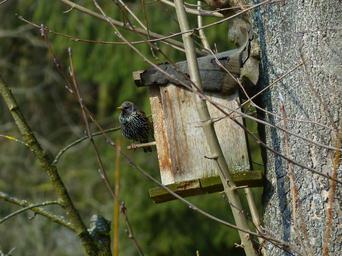 Keywords: star bird animal nesting box black spotted feather bill sturnus vulgaris sparrow bird songbird passeri sturnidae stare sturninae sturnus tree