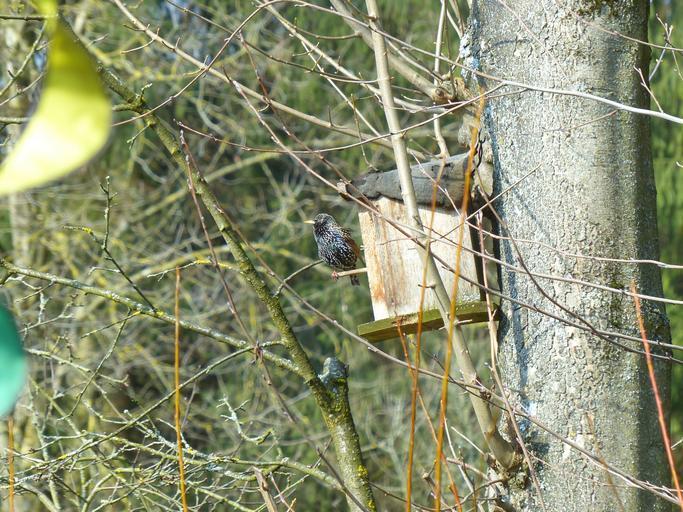 Keywords: star bird animal nesting box black spotted feather bill sturnus vulgaris sparrow bird songbird passeri sturnidae stare sturninae sturnus tree