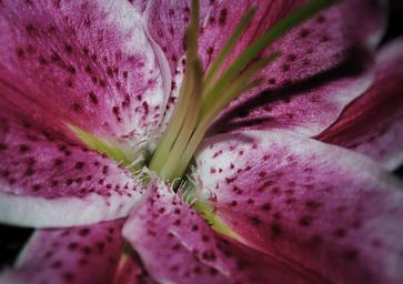 Keywords: StargazerLily.jpg en Photograph of the interior of a stargazer lily macro of the stamens and petals own Lisaw123 2010-01-07 Close-ups of flowers Lilium 'Star Gazer'