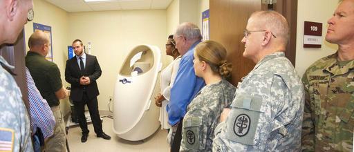 | Keywords: fort irwin fortirwin weed army community hospital weedarmycommunityhospital national training center nationaltrainingcenter wach ntc meddac col. jason wieman coljasonwieman csm jorge rodriguez csmjorgerodriguez united states army unitedstatesarmy soldiers col. scott taylor colscotttaylor mojave troop support troopsupport resiliency center resiliencycenter fort irwin army wellness center fortirwinarmywellnesscenter imcom health health benefits healthbenefits army triad armytriad preventive medicine preventivemedicine indoor FORT IRWIN, Calif. -- Soldiers, civilians and family members celebrated the opening of the new Army Wellness Center in the garrison Resiliency Center during a ribbon-cutting ceremony Nov. 19, 2015. The new facility, the 24th Army Wellness Center to open across the Army since 2005, is a program of the U.S. Army Medical Command and an integral part of the recently renovated garrison Resiliency Center that opened in June. The new Army Wellness Center (AWC) offers modern health services, programs and state-of-the-art equipment free of charge to all DoD ID card holders on Fort Irwin, including health assessment reviews, which analyze a patient's health status, risk for disease and ability to exercise safely; physical fitness testing and exercise prescriptions; healthy nutrition programs and strategies using metabolic testing to provide individualized strategies for weight loss, gain or maintenance; stress management techniques using biofeedback to reduce stress; general wellness education through classes on topics such as healthy lifestyles, increased resiliency and self-care; and tobacco education using assessments to determine an individual's readiness to become tobacco-free. To learn more about the people and facilities of the Weed Army Community Hospital and the National Training Center at Fort Irwin visit the new WACH website at www.irwin.amedd.army.mil Photo by Michael Beaton, Weed Army Community Hospital PAO (Released). FORT IRWIN, Calif. -- Soldiers, civilians and family members celebrated the opening of the new Army Wellness Center in the garrison Resiliency Center during a ribbon-cutting ceremony Nov. 19, 2015. The new facility, the 24th Army Wellness Center to open across the Army since 2005, is a program of the U.S. Army Medical Command and an integral part of the recently renovated garrison Resiliency Center that opened in June. The new Army Wellness Center (AWC) offers modern health services, programs and state-of-the-art equipment free of charge to all DoD ID card holders on Fort Irwin, including health assessment reviews, which analyze a patient's health status, risk for disease and ability to exercise safely; physical fitness testing and exercise prescriptions; healthy nutrition programs and strategies using metabolic testing to provide individualized strategies for weight loss, gain or maintenance; stress management techniques using biofeedback to reduce stress; general wellness education through classes on topics such as healthy lifestyles, increased resiliency and self-care; and tobacco education using assessments to determine an individual's readiness to become tobacco-free. To learn more about the people and facilities of the Weed Army Community Hospital and the National Training Center at Fort Irwin visit the new WACH website at www.irwin.amedd.army.mil Photo by Michael Beaton, Weed Army Community Hospital PAO (Released). |
