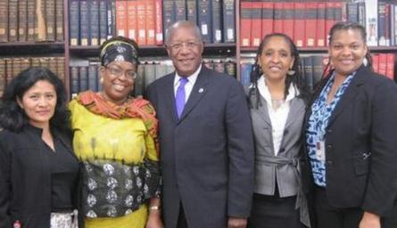 | Keywords: State Department Special Dialogue - International Year for People of African Descent and Caribbean-American Heritage Month.jpg en The Race Ethnicity and Social Inclusion Unit and Office of Caribbean Affairs of the Bureau of Western Hemisphere Affairs co-hosted a special dialogue that linked the United Nations' and Organization of American States' designation of 2011 as the International Year for African Descent with Caribbean American Heritage Month From left to right note ordering in State Dept caption was incorrectly reversed Deputy Assistant Secretary Fabiola Rodriguez-Ciampoli; Dr Claire Nelson of the Institute for Caribbean Studies; Dr Howard Dodson from the Schomburg Center for Research on Black Culture; Director Makila James; Senior Advisor Zakiya Carr Johnson at the Special Dialogue International Year for People of African Descent Caribbean-American Heritage Month on June 8 2011 in the Ralph Bunche Library at the Department of State State Dept Image by Dan Taylor / Jun 08 2011 http //www state gov/p/wha/rt/social/iypad/dialogue/index htm Dan Taylor U S State Department 2011-06-08 United States Department of State officials Makila James PD-USGov |