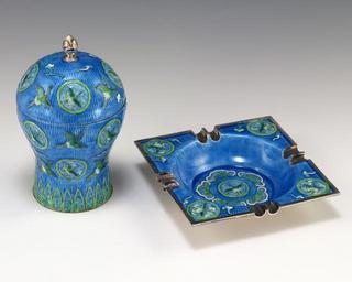 | Keywords: State Gifts Enameled Smoking Set.JPG en An enameled metal ashtray and cigarette container with blue and green enamel depicting a flying bird motif Gift of Mr Heung-Moon Koh Congressman Republic of Korea enamel 5 H Institution Gerald R Ford Presidential Museum http //www fordlibrarymuseum gov/museum/ArtifactCollectionSamples/Catagories/StateGifts/EnamelAshtray html Ashtray accession number 1987 104 1a-b credit line Courtesy of the Gerald R Ford Presidential Museum Donation Date November 25 1974 Institution Institution Gerald R Ford Presidential Museum Gerald R Ford Presidential Library and Museum-cooperation PD-USGov Uploaded with UploadWizard Gifts of heads of state in the Gerald R Ford Presidential Museum Smoking companion set Relations of South Korea and the United States Metal ashtrays Tobacco containers |
